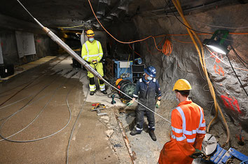 Installazione di una catena di sismometri nel pozzo ST1 per il monitoraggio delle stimolazioni nel pozzo ST2, presso nel laboratorio di Bedretto dell’ETH di Zurigo. Il lavoro è stato svolto sotto la direzione di Geo-Energie Suisse.