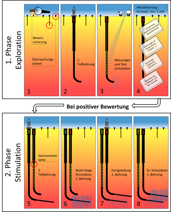 Das innovative Multi-Stage-Stimulationssystem der Geo-Energie Suisse AG wurde mit dem Ziel konzipiert, die induzierte Seismizität auf das absolute Minimum zu reduzieren. Das schrittweise Vorgehen ermöglicht die ständige Kontrolle der seismischen Ereignisse und damit die Anpassung der Arbeiten, bis hin zum vollständigen Stimulationsstopp.
